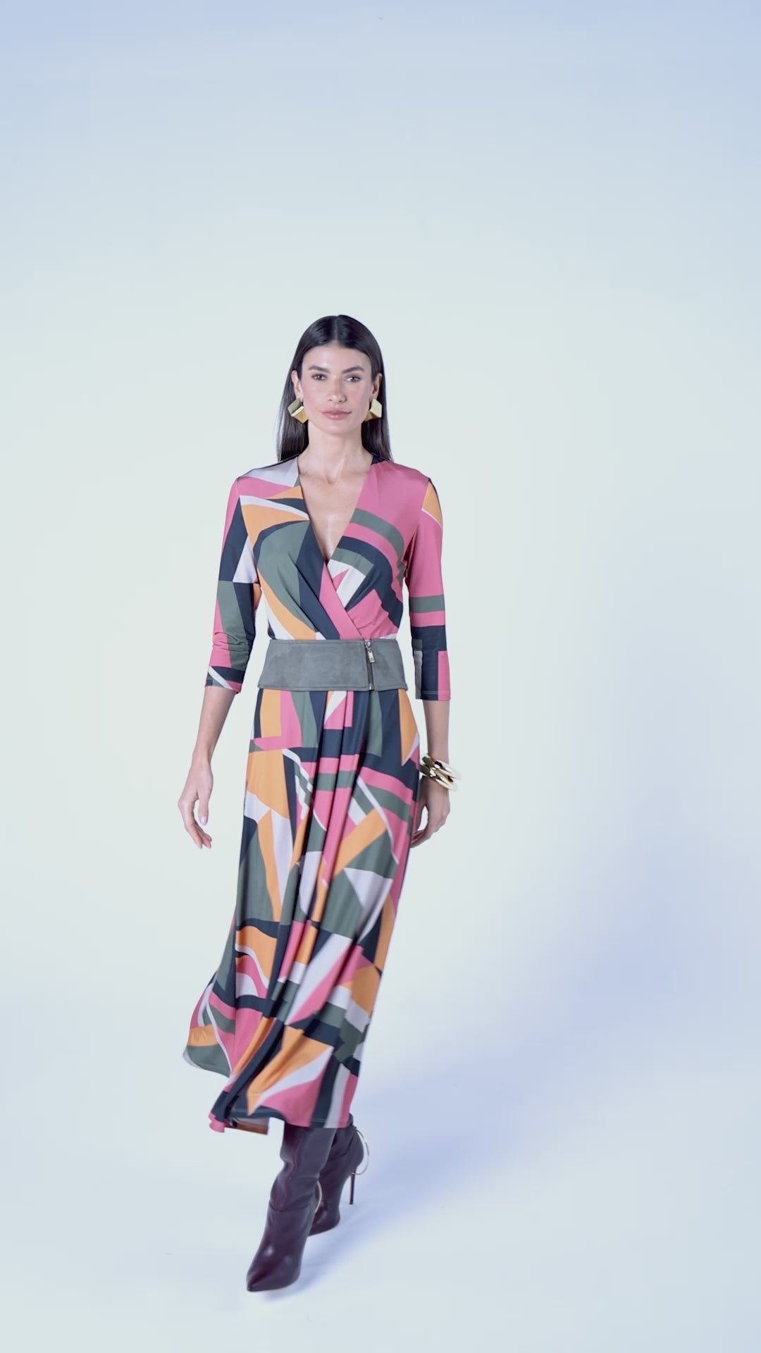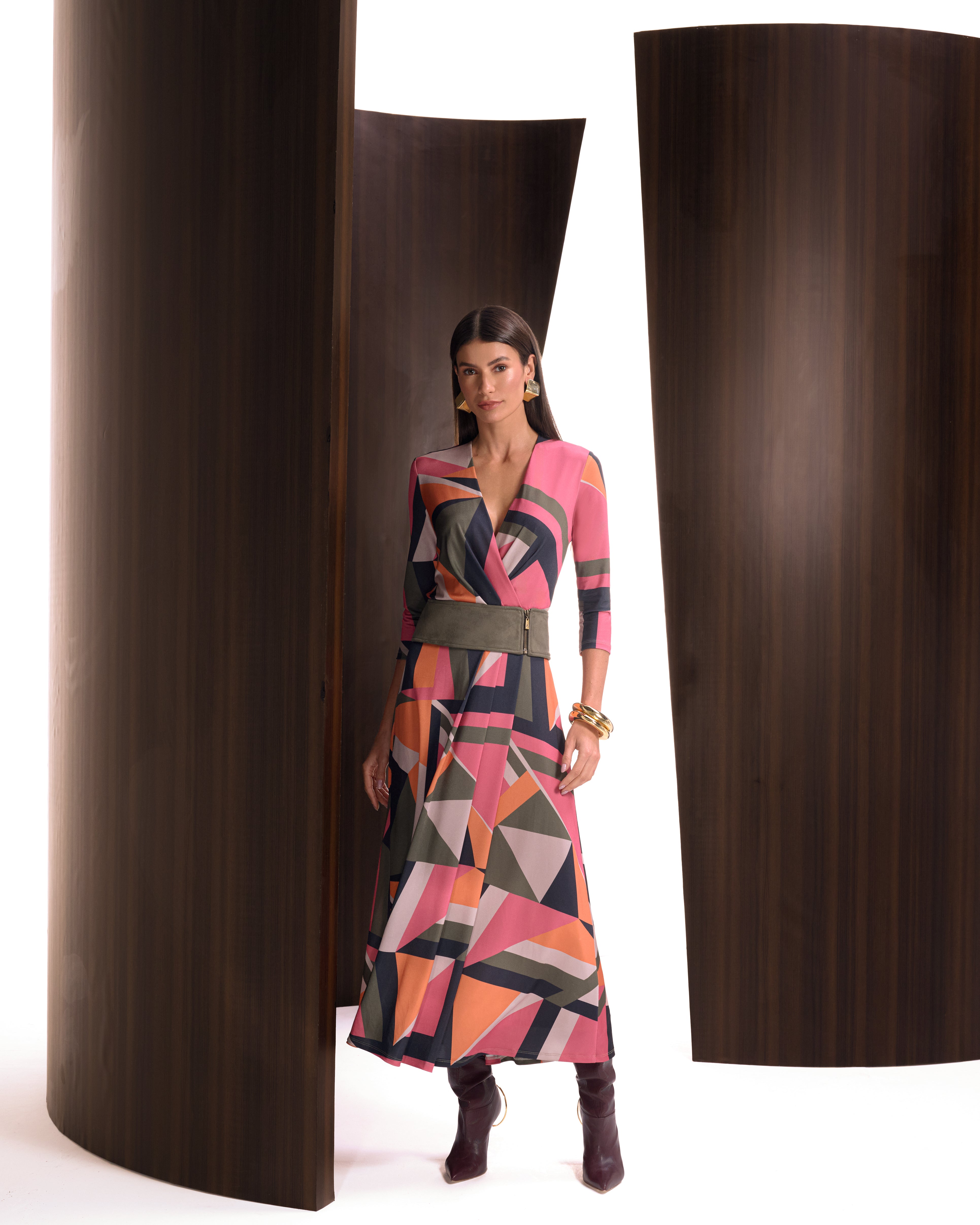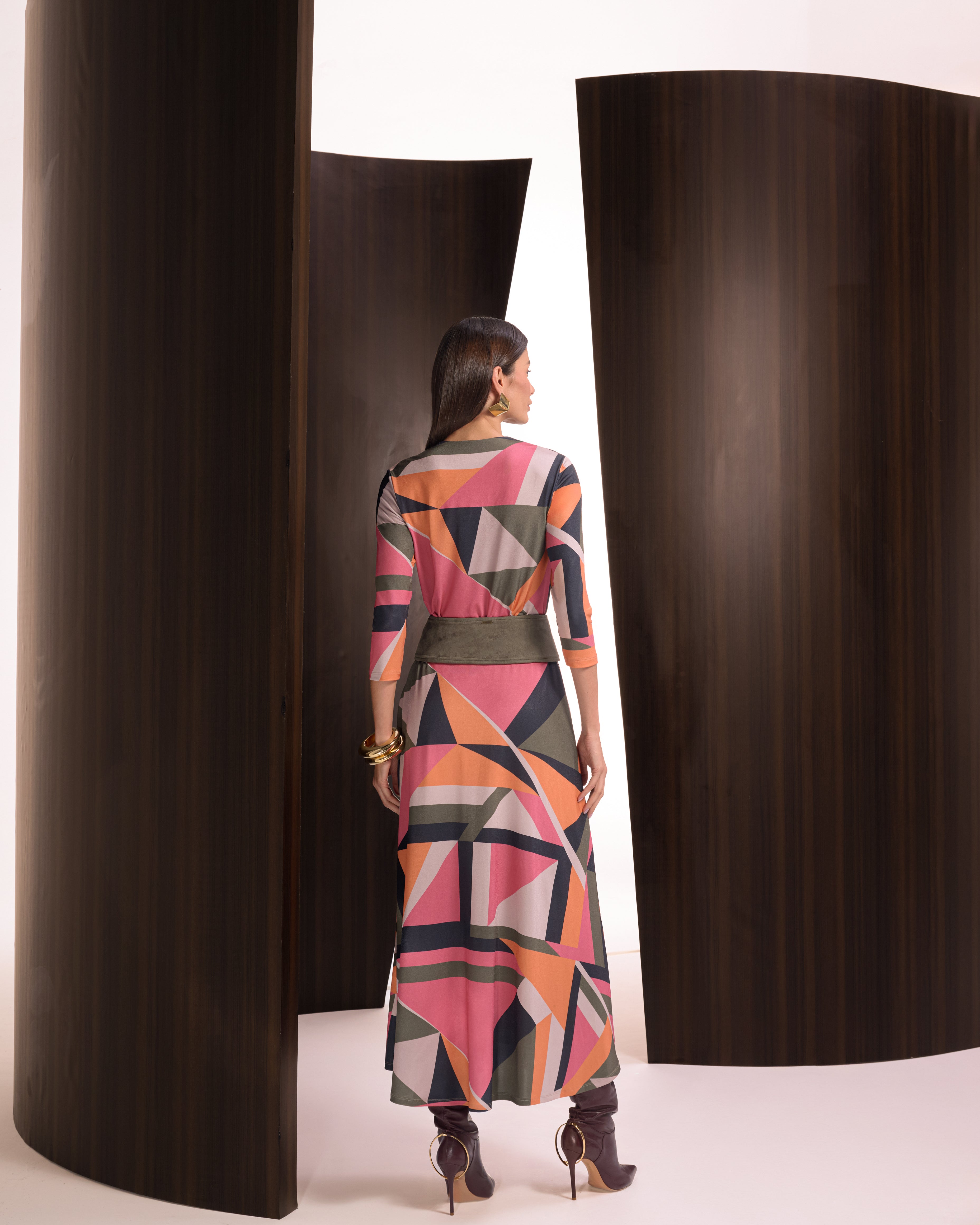 VESTIDO LONGO ESTAMPA GEOMETRICA COM CINTO - UNICA - 199352JAT