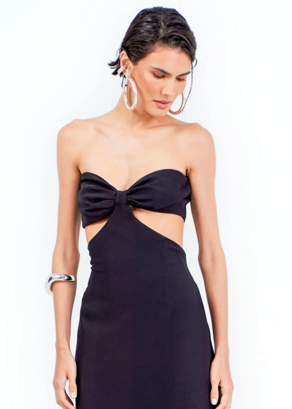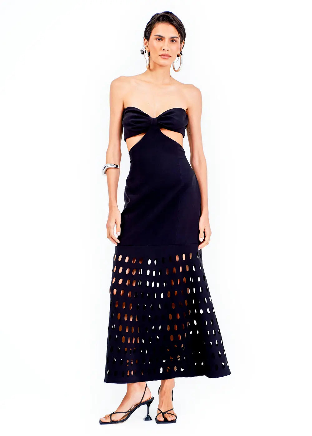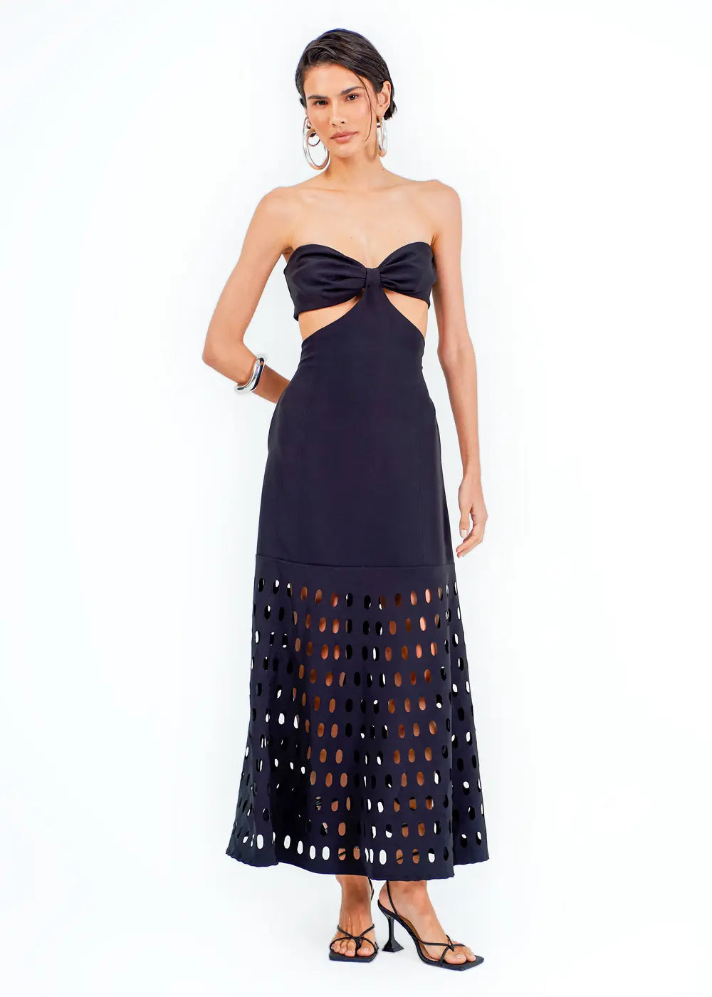 VESTIDO MIDI DETALHES VAZADO - PRETO - 188350ALN